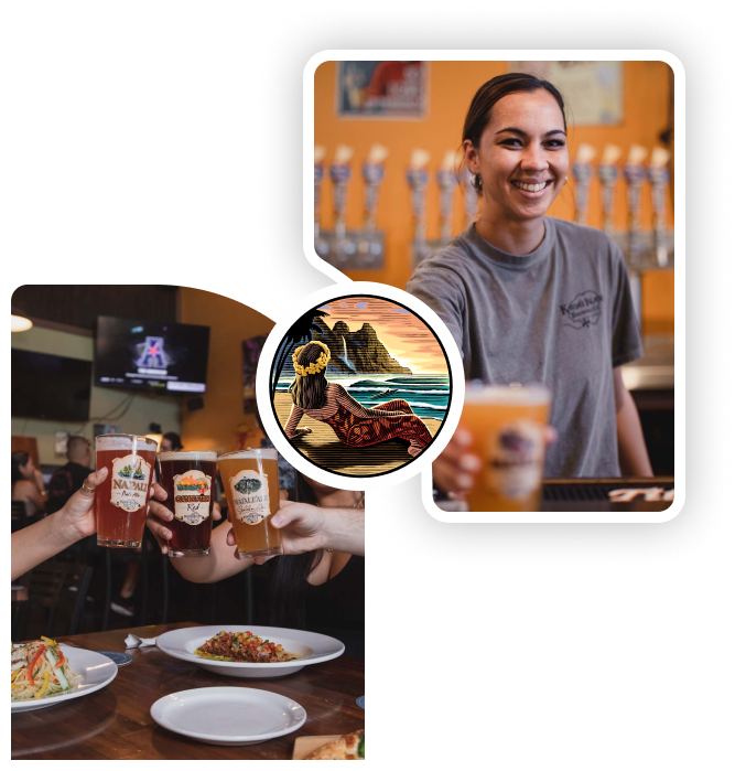 With over a decade in brewing, we’ve mastered the art of crafting exceptional beers. Our taps flow with over 10 in–house brews, each telling a unique story of Kaua’i. When you think Hawaiian craft beer, think local, think Kaua’i. While the market may be awash with Hawaiian brews, we’re here to offer you a taste that’s authentically Kaua’i.